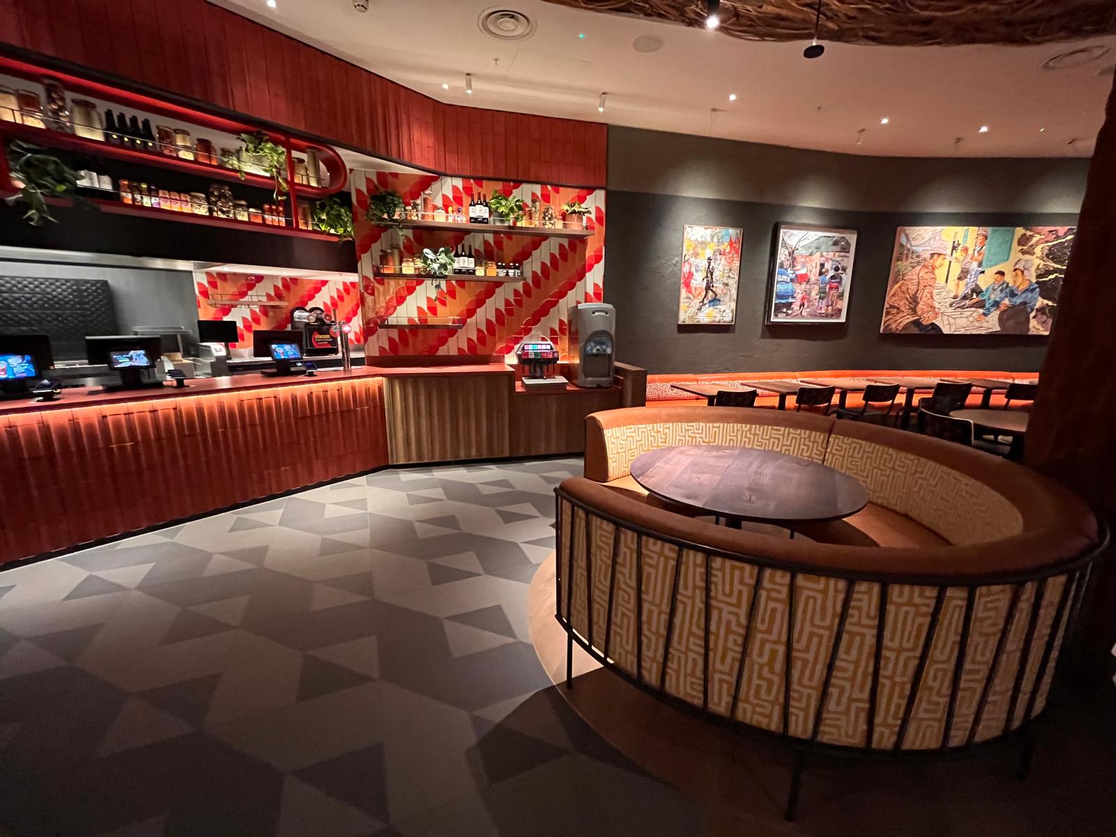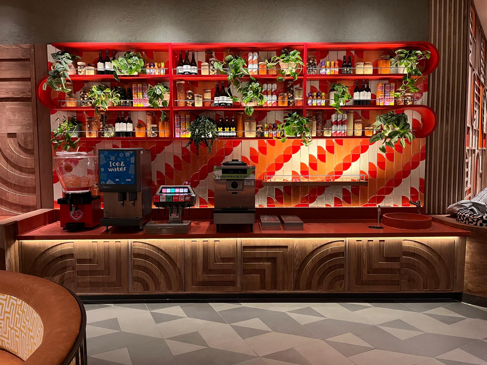 Normally, a complex scheme like this would be the shining star, but on this project, we were challenged to source bespoke design glazed terracotta tiles for the servery wall, offering a vibrant, handcrafted aesthetic that aligns with the brand’s identity while delivering durability and hygiene.